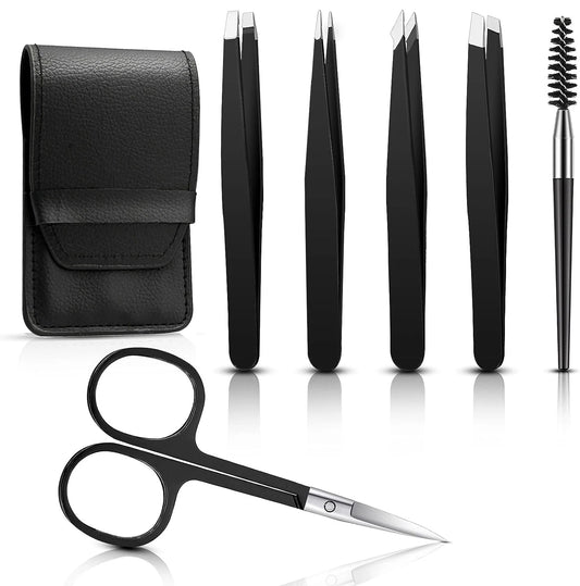Kit de pinças de sobrancelha, 6 peças, com estojo, tesoura de sobrancelha, escova de cílios / pestanas
