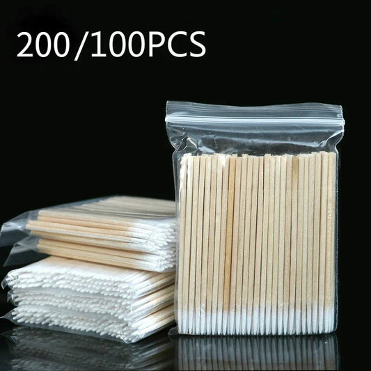 Palitos de madeira com ponta de algodão - Para sobrancelha, eyeline, extensão de cílios / pestanas, etc.